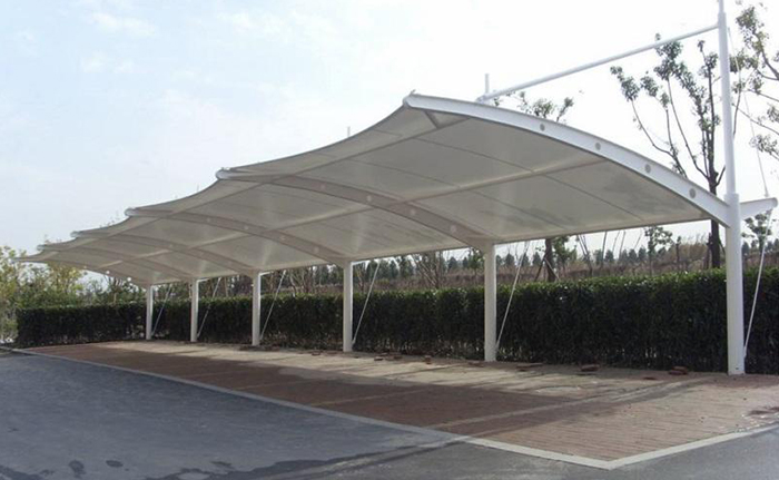 張拉膜車棚資料選用了進口結構修建資料。車棚骨架,外表處理選用進口船用底漆,炳烯酸聚氨酯面漆。